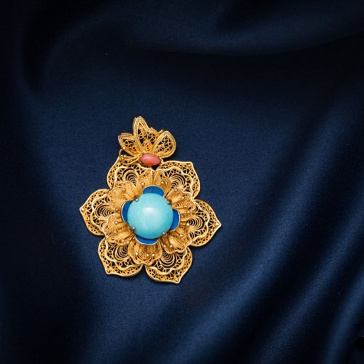 925银镀24K金 点翠