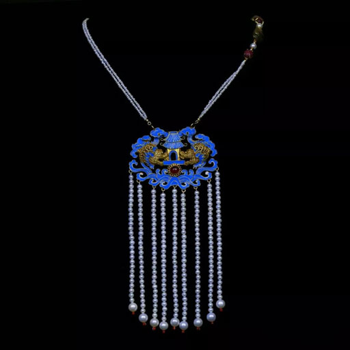 《海水江崖双龙捧珠鎏金红宝石珍珠项链》
